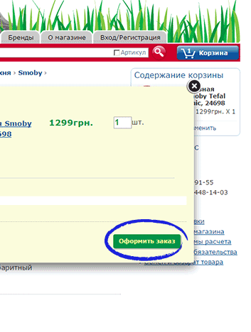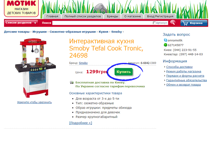 1. Чтобы воспользоваться Купоном на скидку, надо положить выбранный товар в корзину нажав кнопку "Купить".
